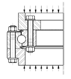 When the axial load is “suspended” from the bearing, it is concentrated predominantly in a smaller area around the bolts. This is a critical difference that must be considered in the design.See figure below.